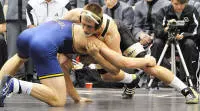 The Black Knights seized control of the match by taking the next three bouts. Coffey began the surge as he registered an 11-2 major decision victory over Chuck Zeisloft at 125 pounds. Sophomore Jordan Thome and senior Casey Thome followed by posting decisions, as Army built a 16-7 cushion with just four bouts remaining. Jordan Thome earned a 5-3 win over Jimmy Kirchner in the 133-pound matchup, while older brother Casey Thome blanked Aaron Nestor, 5-0, at 141 pounds.