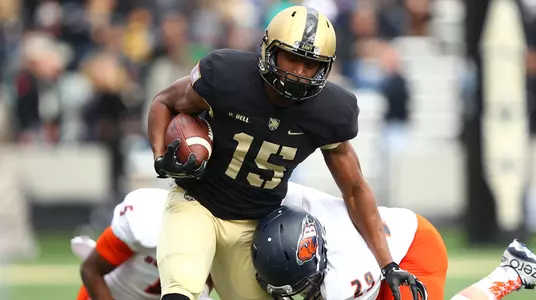 2015: Played in every game ... listed in the starting lineup eight times ... seven catches for 166 yards and one touchdown ... averaged 23.7 yards per catch ... earned first-career start opposite Fordham ... carried once for a loss of six yards at Connecticut ... made one grab for 31 yards against the Demon Deacons ... hauled in two passes for 67 yards against Eastern Michigan ... long reception of 49 yards at EMU ... recovered a fumble at Penn State ... did not record a statistic against Duke ... made one catch for seven yards against Bucknell ... also credited with a solo tackle against the Bison ... made his first-career touchdown reception with a 16-yard score at Rice ... caught two passes for 45 yards against Navy ... long reception of 39 yards versus the Mids ... threw one pass that was intercepted in the Navy game.